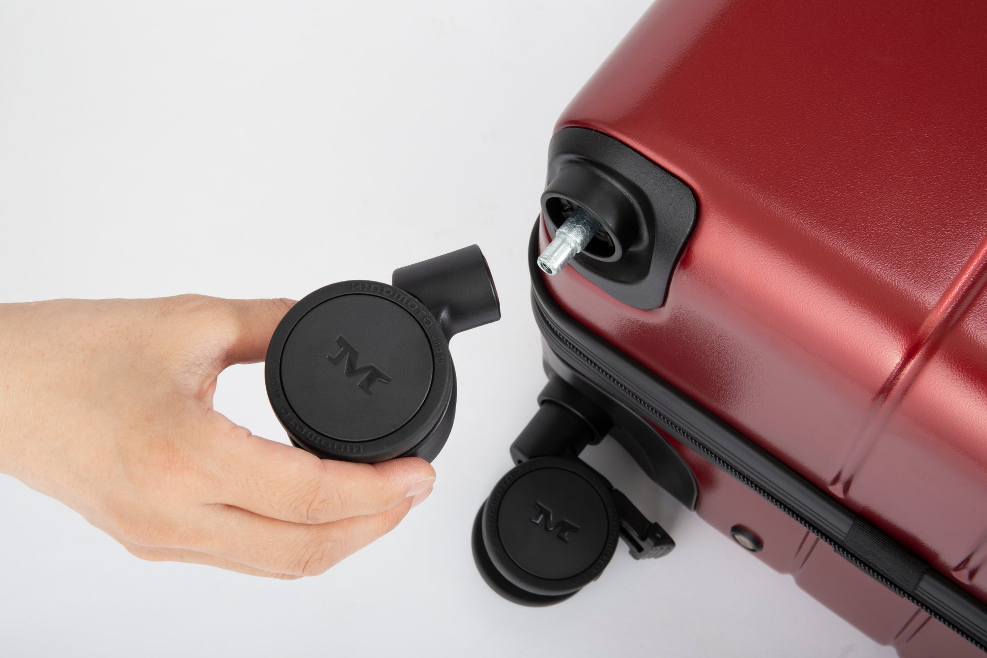 1.「スペア付き交換可能キャスター」 MAIMOのスーツケースは付属の六角レンチで簡単にキャスター交換可能。キャスターの故障でスーツケースを買い替える必要がないので、長く快適にお使いいただけます。COLOR YOU plusにはスペアキャスターが1個付属するため急なトラブルでも安心です!