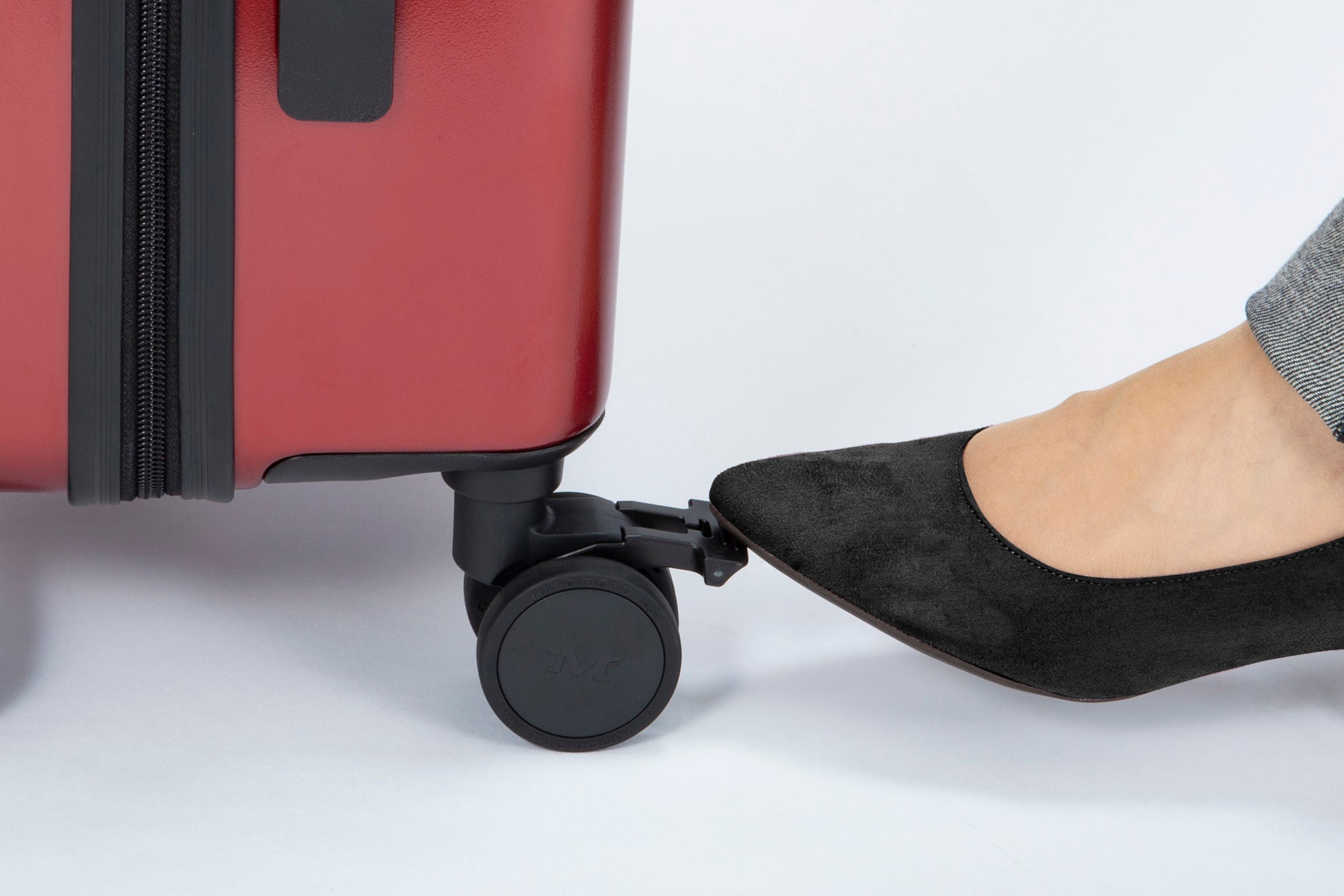 2. 「キャスターストッパー」COLOR YOU plusのキャスターにはストッパー機能を搭載。坂道の途中や電車の揺れでもしっかり止まります。立ったまま踏むだけで、力を使わず簡単に固定と解除が可能です。