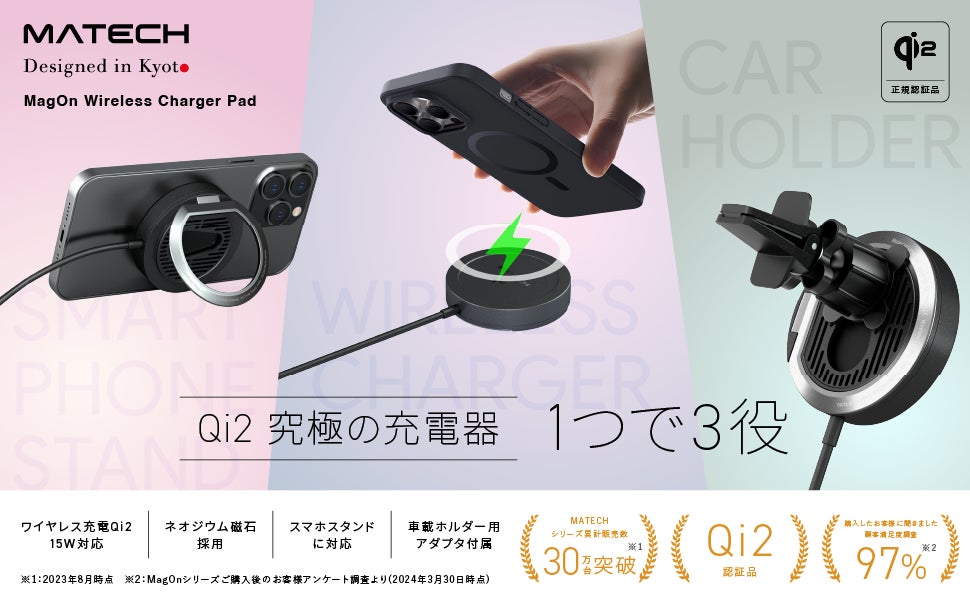 MagOn 3in1 Wireless Charger (Pad) 車載充電器としても使えるマグネット式充電パッド