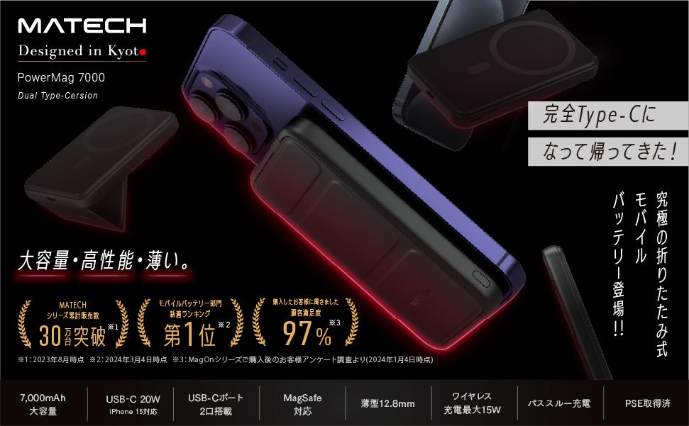 PowerMag 7000 ワイヤレス充電とマグネット吸着を備えた小型7000mAhモデル