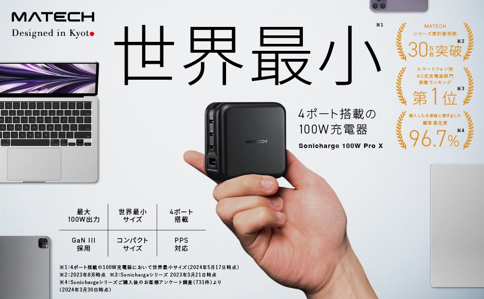 Sonicharge 100W Pro X USB-C×3・USB-A×1搭載の最大100W出力GaN急速充電器