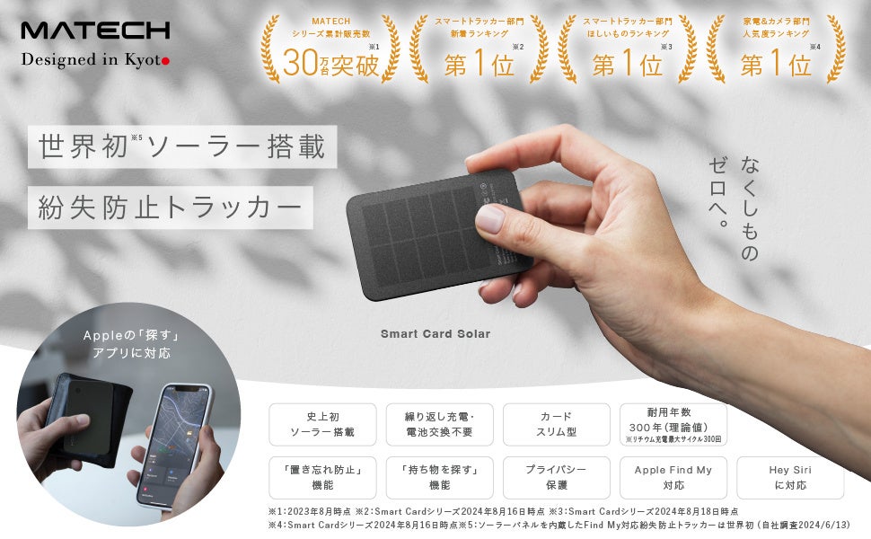 Smart Card Solar 薄型クレジットカードサイズのソーラー式紛失防止タグ