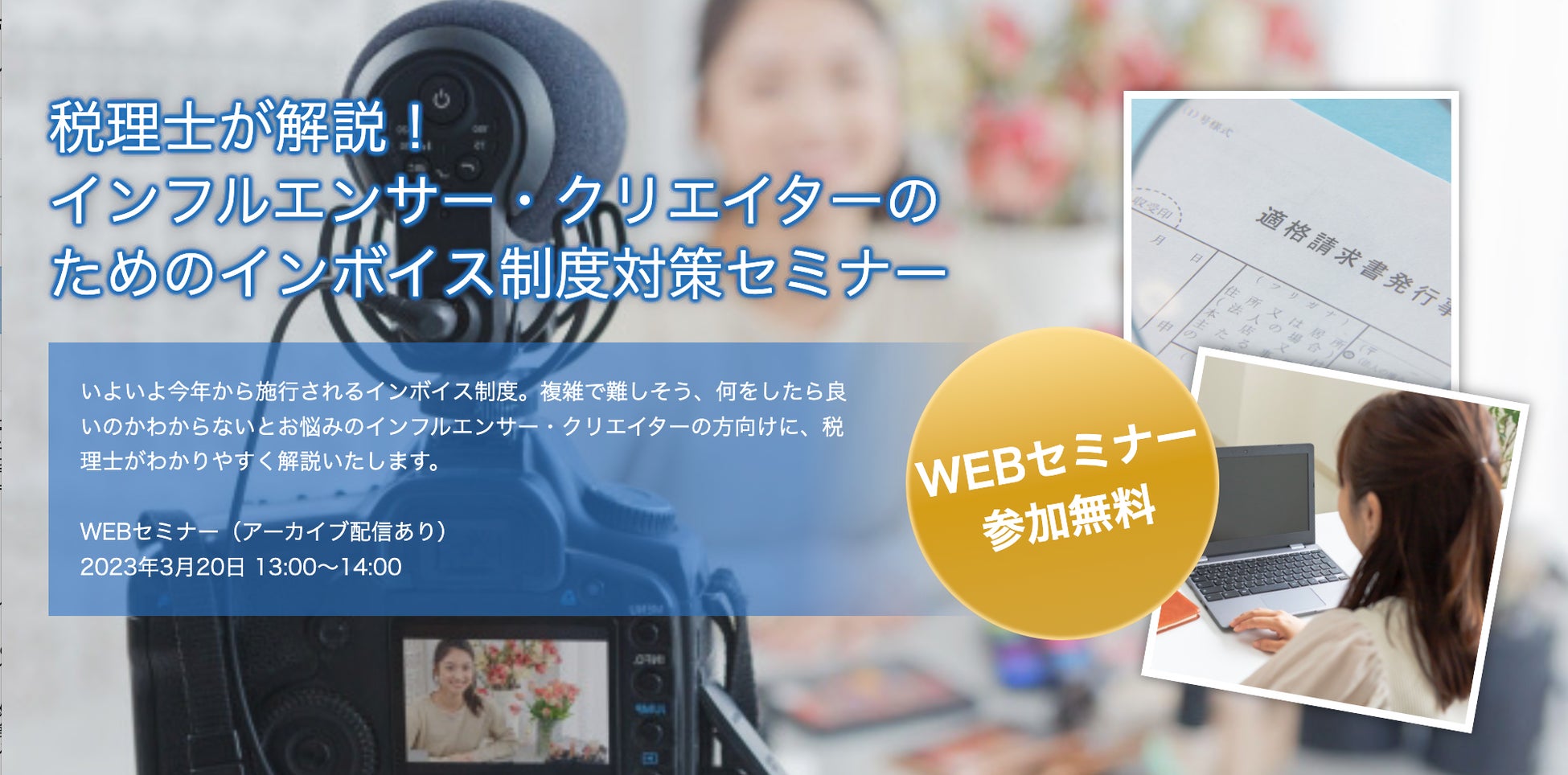 そこでエイスリーは支援の一環として、インフルエンサー・クリエイターを対象にインボイス制度にまつわる悩みを解消するWEBセミナーを、税理士法人のトリプルグッドと共同で開催致します。