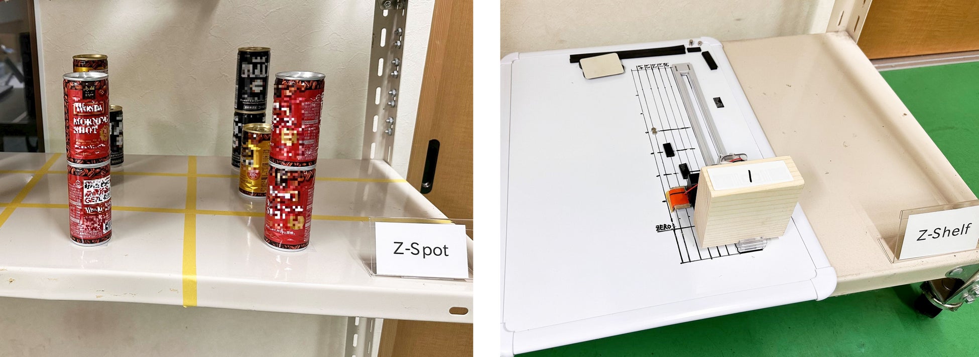 Z-SHELF:コンビニやスーパーの棚に対応。物品の幅で増減を自動管理
