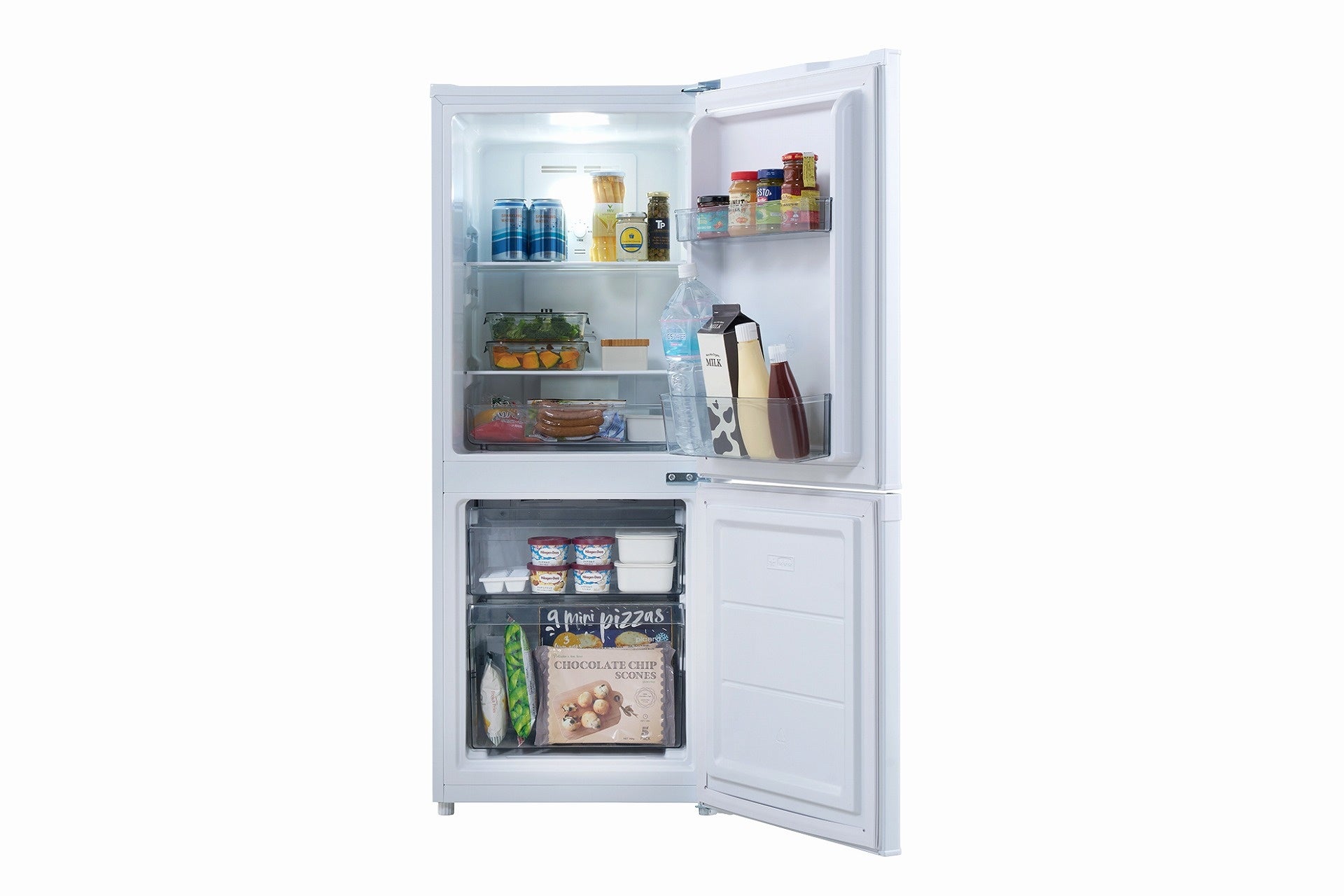 昨今の電気料金高騰を背景に、小型冷蔵庫においても省エネや電気代の節約のニーズが高まっています。また、ひとり暮らしでも、冷凍食品や作り置きおかずを上手に使って自炊を楽しむ人が増え、より多く食品を保存できる冷凍室が求められる一方で、「整理しにくく使い忘れが起こりやすい」という課題もありました。本製品は、お客様のそのような声にお応えするため、省エネと静音を実現し、使いやすい大容量冷凍室と、生活空間になじむシンプルデザインを両立した、2ドア冷凍冷蔵庫です。
