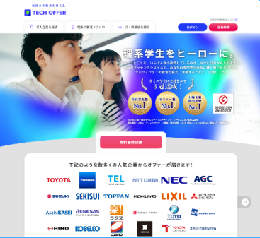 TECH OFFERの利用企業数は現在750社です。また理系学生からも支持され、理系ダイレクトリクルーティングサービスにおいて「2023・24卒会員学生数 No.1」となりました。(※)