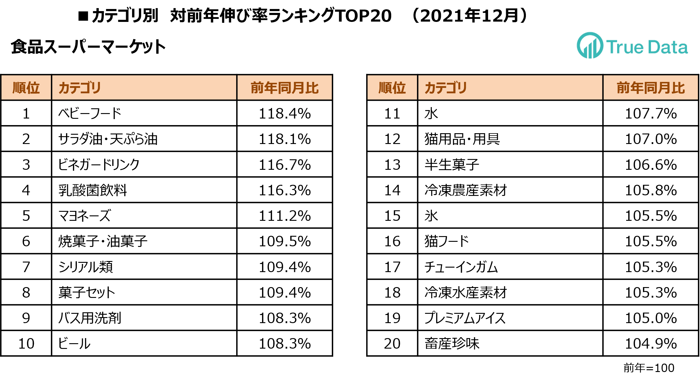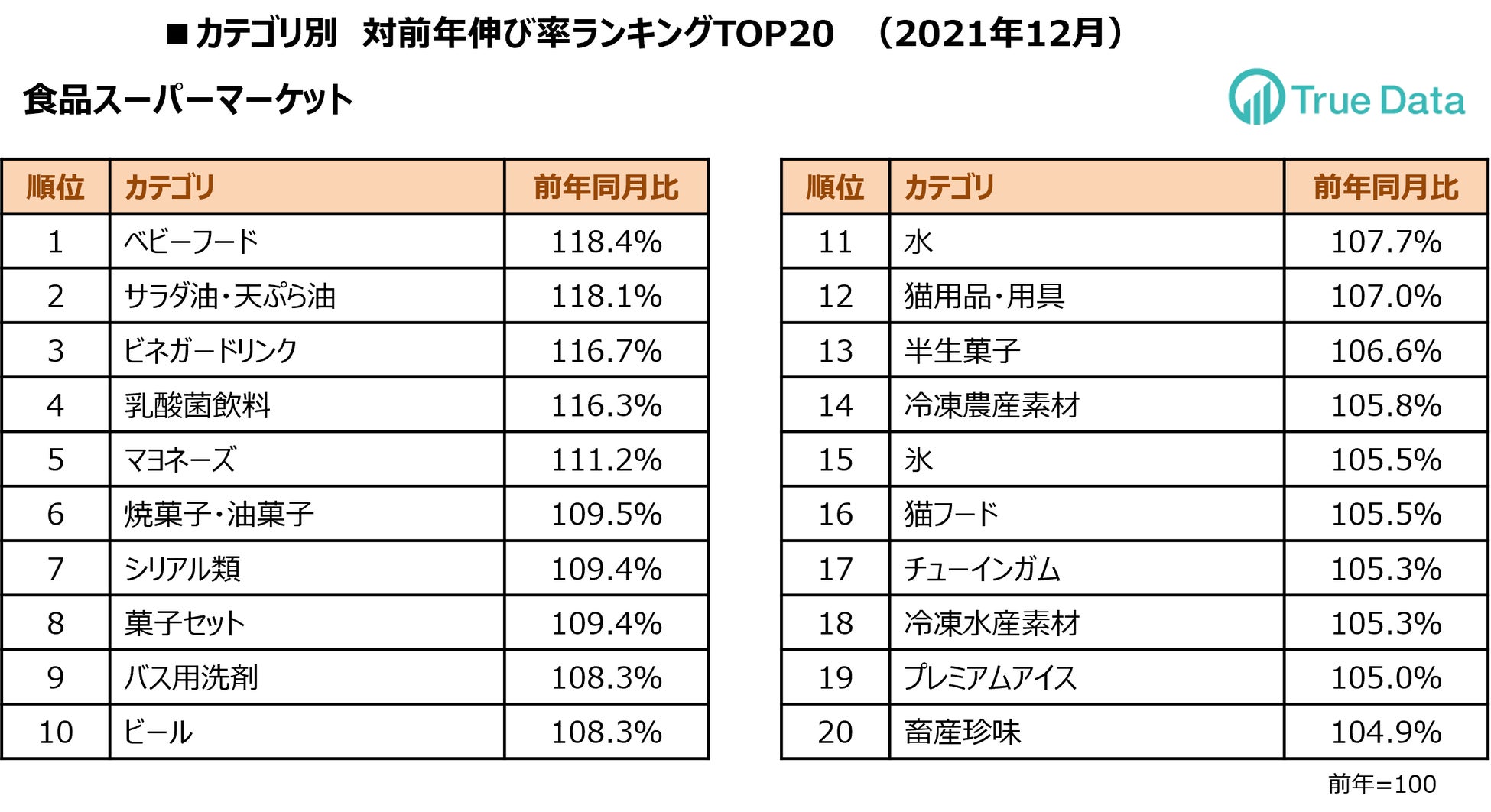 ~ドラッグストア、食品スーパーマーケット 2021年12月の伸び率TOP20カテゴリを発表 ~