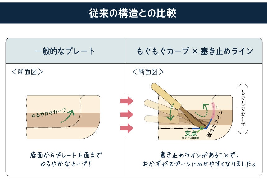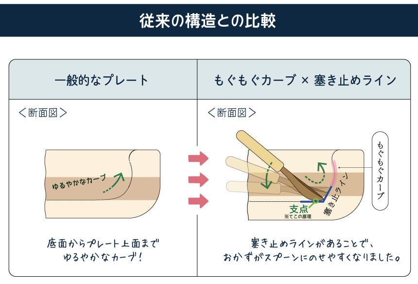 独自技術”もぐもぐカーブ×塞き止めライン”でさらにごはんが掬いやすくなりました。