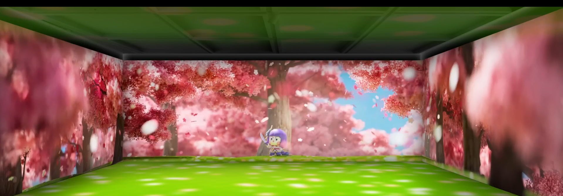 B1Fは、キャラクターやアーティストの世界に没入できる体験型空間。約40坪の広さで、壁面と床面の立体的な送出環境で映像と音が融合する、スペシャルなコンテンツを体験できます。スケール感と没入感、臨場感といった特別なメディア体験を提供。一定期間ごとに人気のアーティストやキャラクターにテーマを変え、特別な映像空間でブランド体験とともにその世界観に没入できる、エンターテイメントエリアとなっています。