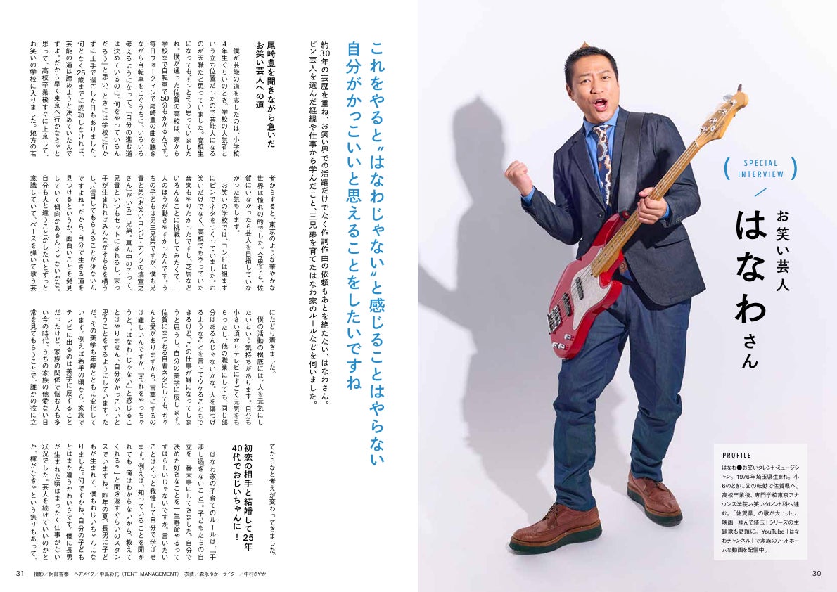 約30年の芸歴を重ね、お笑い界での活躍だけでなく作詞作曲の依頼もあとを絶たない、はなわさん。 ピン芸人を選んだ経緯や仕事から学んだこと、三兄弟を育てたはなわ家のルールなどを伺いました。