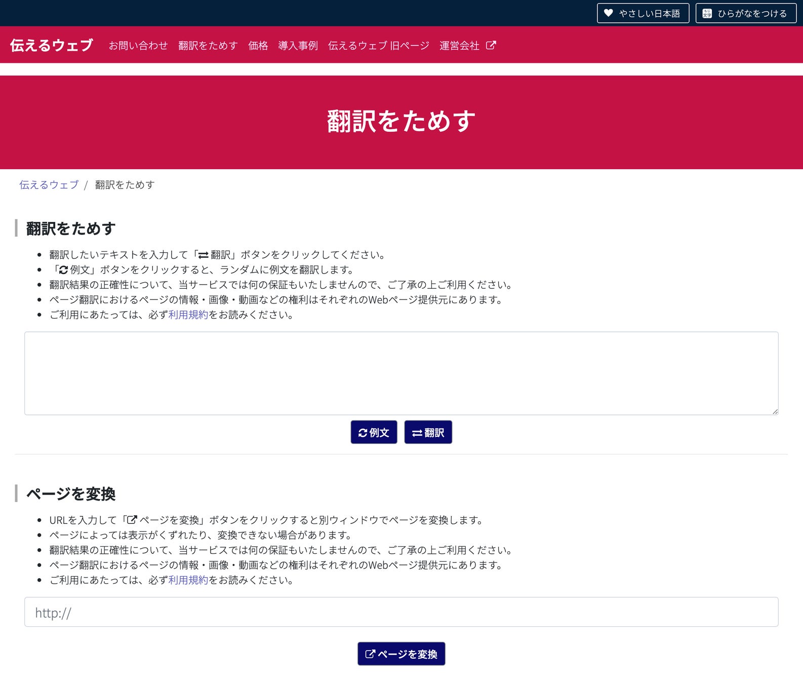 翻訳をためす(ホームページ一式のやさしい日本語化)