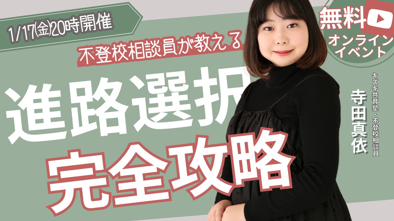 1月17日20:00~、不登校オンラインは無料イベント「【進路未定で不安な方へ】不登校相談員が教える進路選択の”やることリスト”作り方~「何から始める?」保護者のギモンを一気に解決!~」を開催します