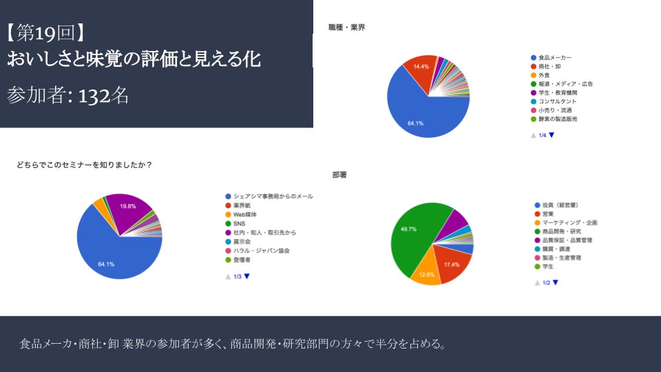 2023年6月時点で第29回目の開催となった同セミナーは、食にまつわる業界情報や製品・サービス紹介などに特化して開催。参加者が定員の100名を超えるセミナーも多く、食品業界のトレンドをおさえた情報をお届けしています。