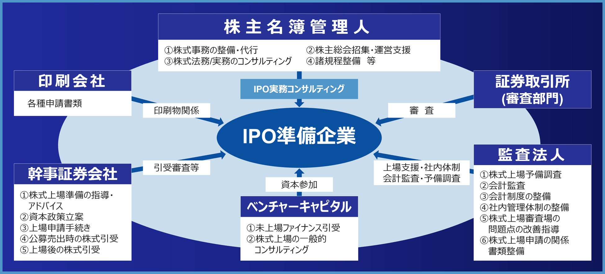 みずほ信託銀行は、IPO準備企業の株主名簿整備や定款変更等の株式実務をはじめ、機関設計や報酬制度の見直し等、IPOに向けた様々な課題解決を支援しております。