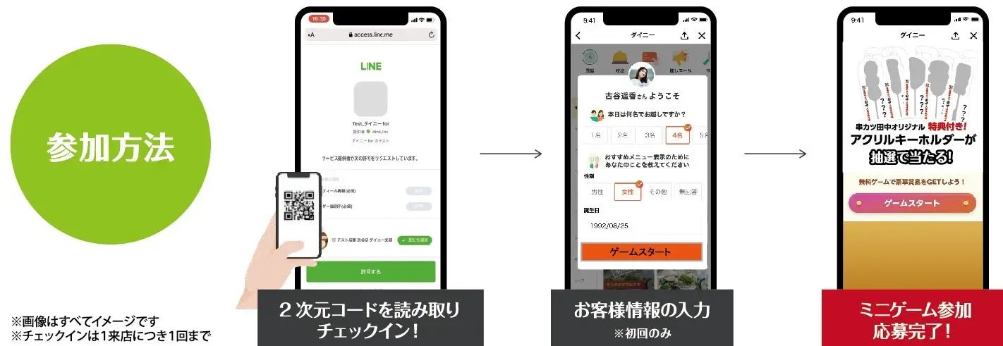 串カツ田中様全店では、6月12日(月)より店舗来店時にチェックインすると、オリジナルグッズが当たるミニゲームに挑戦できるサービスを開始します。