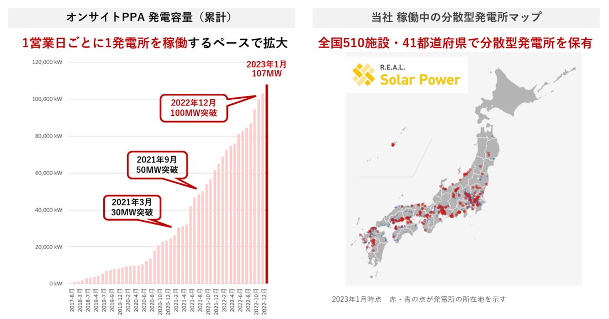 - 2023年度までに累計200MW、1,000施設を目指す(2023年1月現在107MW/510施設稼働)