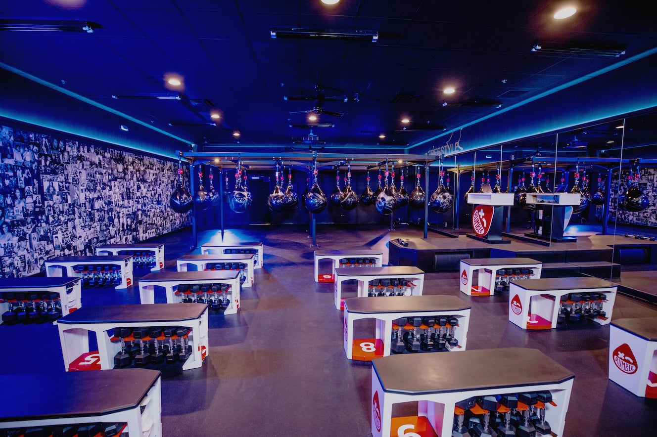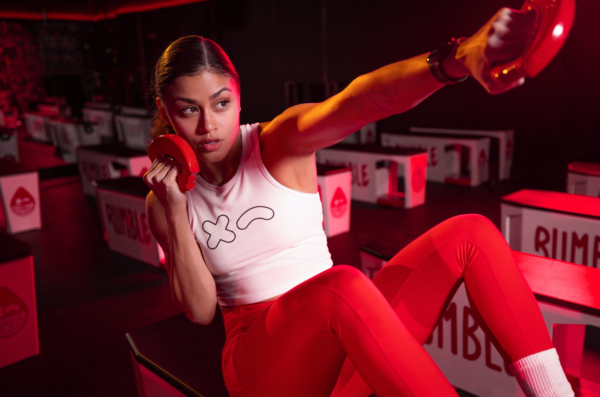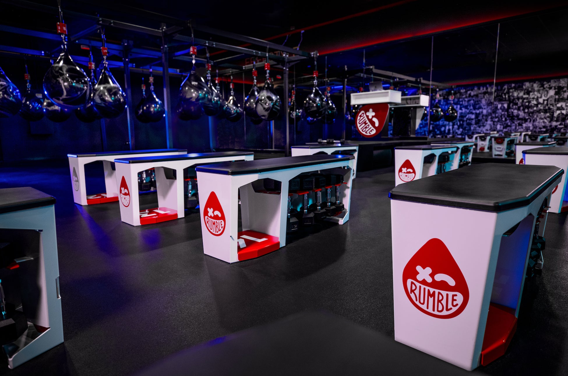 世界最大級のボクシングワークアウトスタジオ『Rumble (ランブル) 』は、2017年にニューヨークで設立され、ボクシングにインスパイアされたサーキットと、レジスタンストレーニングを組み合わせたグループフィットネスクラブです。 一人ひとりに割り当てられたスペース内で、特別にデザインされた水滴型のボクシングサンドバックにパンチを打ち込むボクシングトレーニングと、ウェイトトレーニングをひとつのプログラム内で同時に楽しめます。
