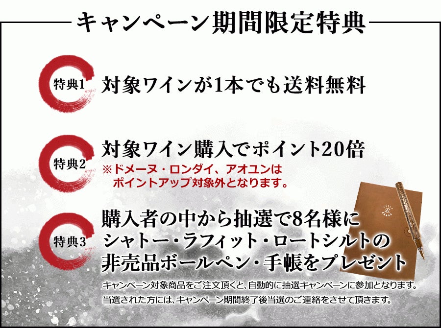特典③:対象ワイン購入者の中から8名様限定で非売品のラフィット・ロートシルトの手帳・ボールペンをプレゼント