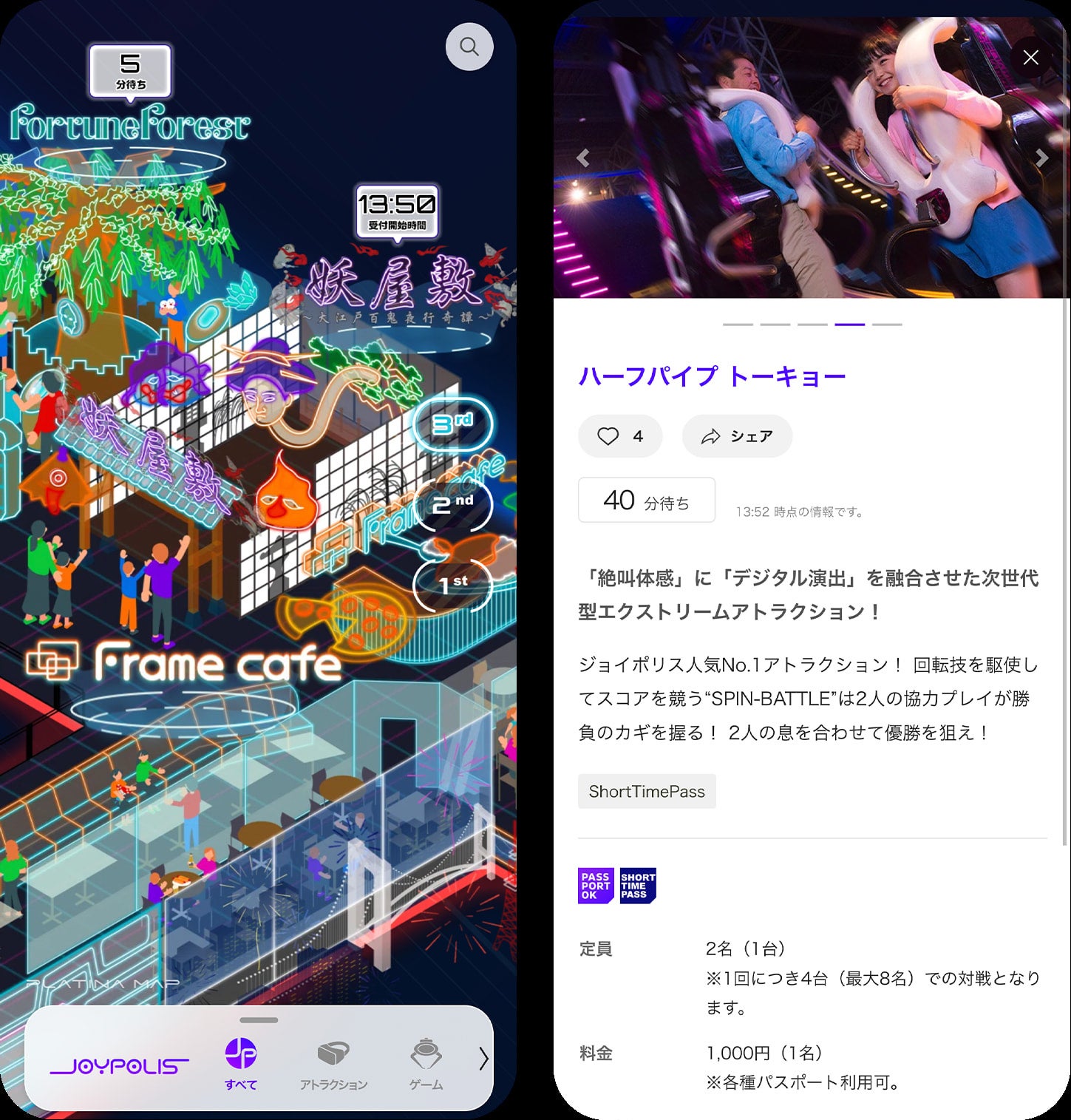 CAセガジョイポリス株式会社(本社:東京都品川区、代表取締役社長:吉本 武)が運営する国内最大級屋内型テーマパーク「東京ジョイポリス」にて、スマートフォンやPCのWEBブラウザで簡単に利用できるデジタルマップ「東京ジョイポリス デジタルフロアマップ」を2024年4月9日(火)に公開します。本デジタルマップは、レジャー施設DXを推進するボールドライト株式会社(本社:東京都新宿区、代表取締役社長:宮本章弘)のデジタルパークマップ・プラットフォーム「プラチナパーク(PlatinaParks)」を基盤としています。東京ジョイポリスの世界観を重視した上で、各アトラクションや施設の位置関係がわかるように表現を工夫し、アトラクションの待ち時間とも連携。機能的でありながら、見ているだけでワクワクする新しいデジタルマップが誕生しました。