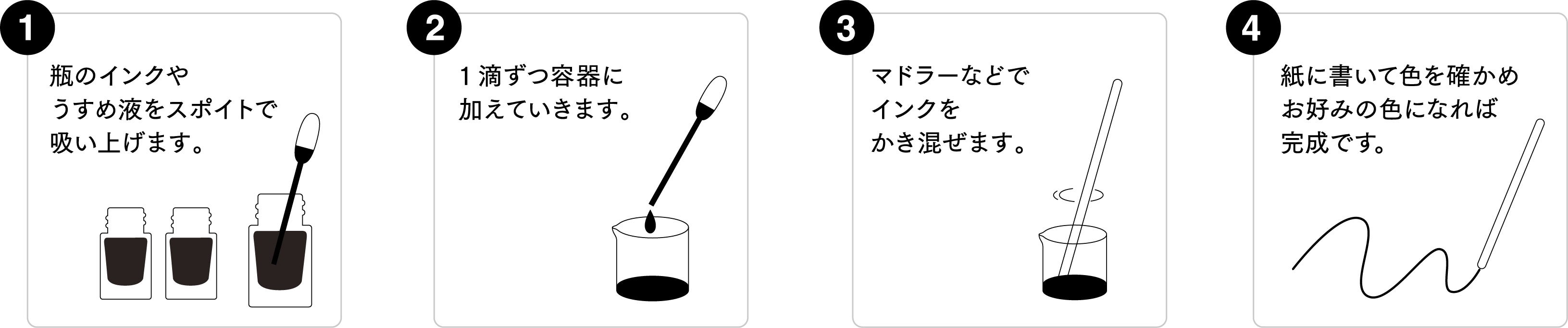 さらに、専用うすめ液を使えば「淡く、明るく」インクの混色の幅が広がります。自分だけのオリジナルカラーインクを作って、さらに万年筆を楽しめる全8色+専用うすめ液の発売です。