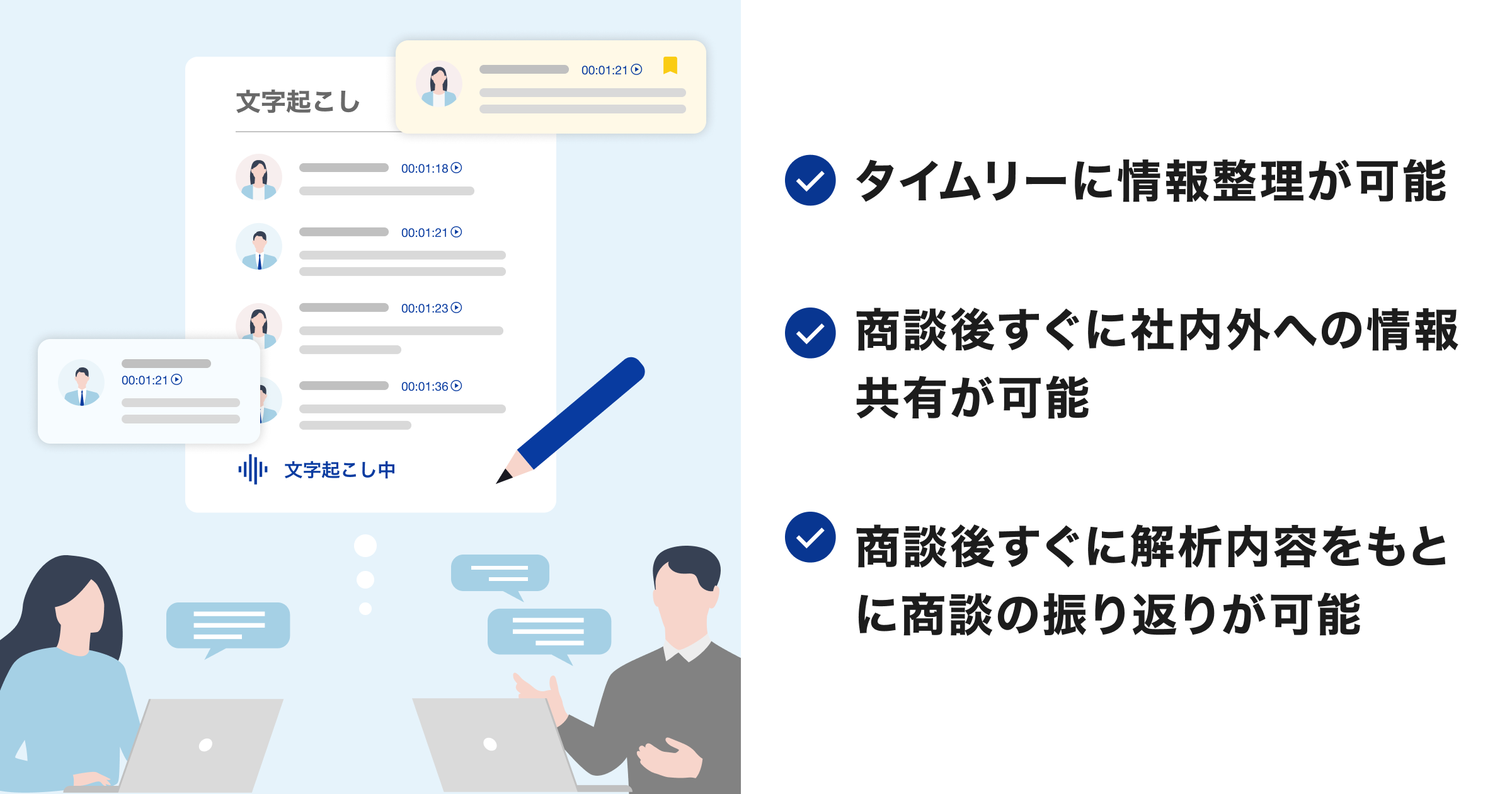 ・商談中も文字起こしされた情報を元に、タイムリーに情報整理が可能になる