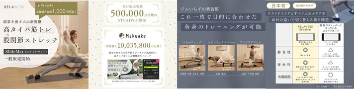 ~Makuakeでサポーター1,100人以上&応援購入金額1,000万円超を獲得~【日本初】のすべり止め構造を採用したRELANESSの「SlideMat」が待望の一般解禁