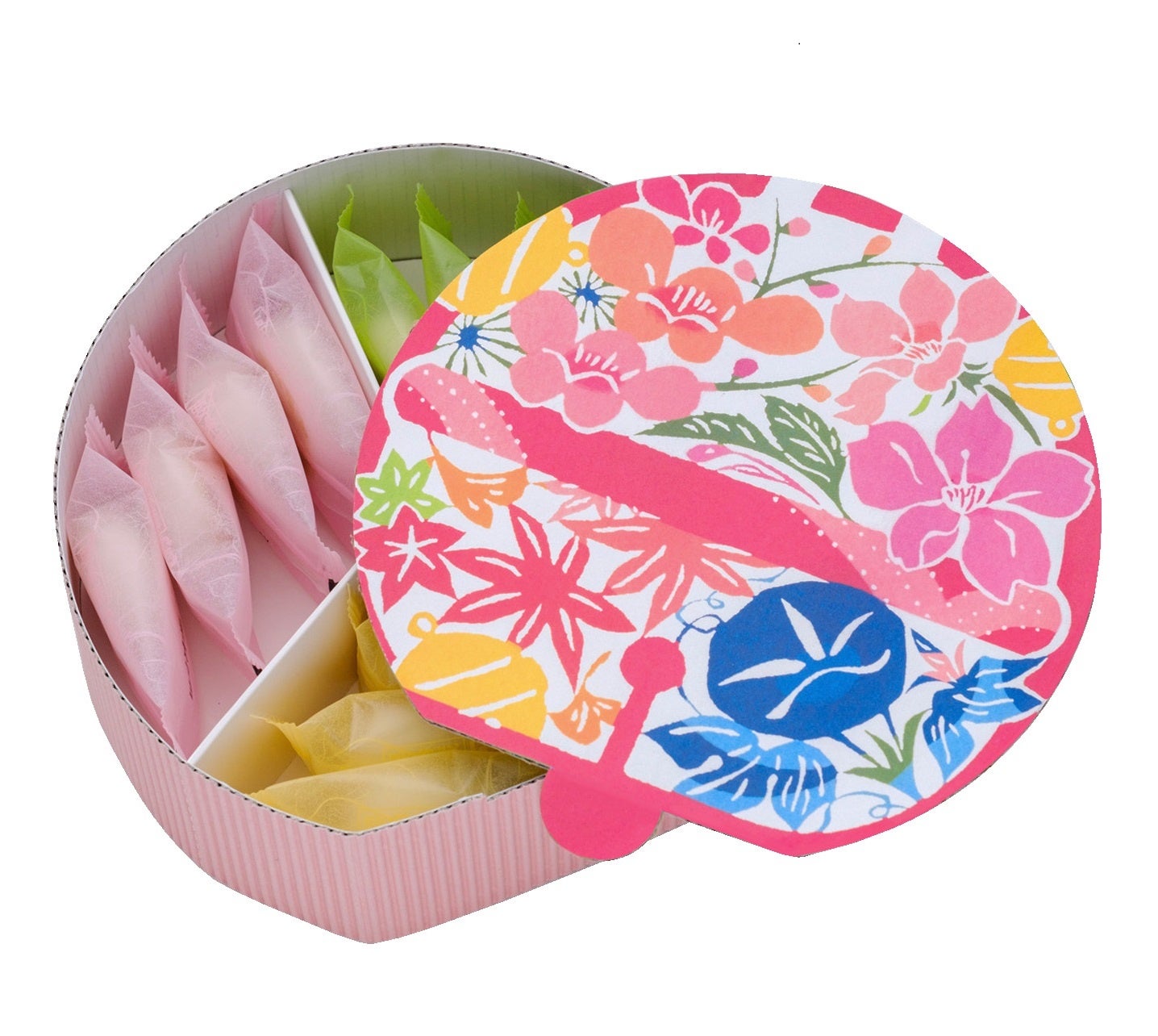「ぷちかま味くらべ」は小さな焼きかまぼこがたくさん入った詰め合わせで、人々が集う場面で召し上がっていただくことが多い商品です。箱根小田原の花を賑々しく散りばめておりますが、「みなさまの会話に花が咲きますように」という願いも込めております。