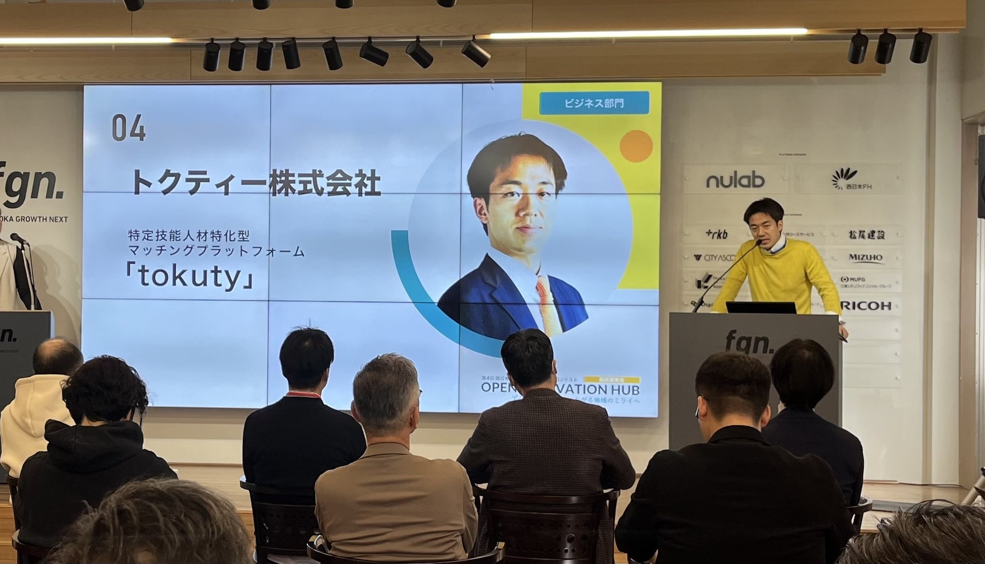 特定技能人材のマッチングプラットフォーム「tokuty」を開発・運営するトクティー株式会社(本社:東京都港区、代表取締役:杉原尚輔、以下、トクティー)は、2月6日(火)に福岡市内で開催された、「第4回西日本FHビジネス・アイデアコンテスト『OPEN INNOVATION HUB』(西日本FHなど主催、以下、OPEN INNOVATION HUB)」ビジネス部門の最終選考会で、「ワールドホールディングス賞」を受賞しました。