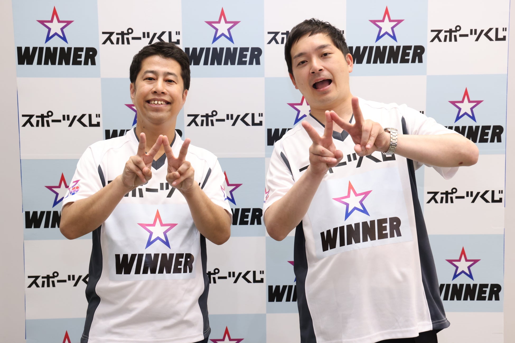また、お二人が応援隊長を務める1試合予想くじ「WINNER」についても紹介。「今日の熱い一戦、僕たちがWEB CMに出させてもらってるWINNERでより熱い応援をしていただきたいなって思ってます!スマホで試合開始10分前まで買えますからね!」と、スタメン発表を確認してからでも買える「WINNER」の魅力について語りました。