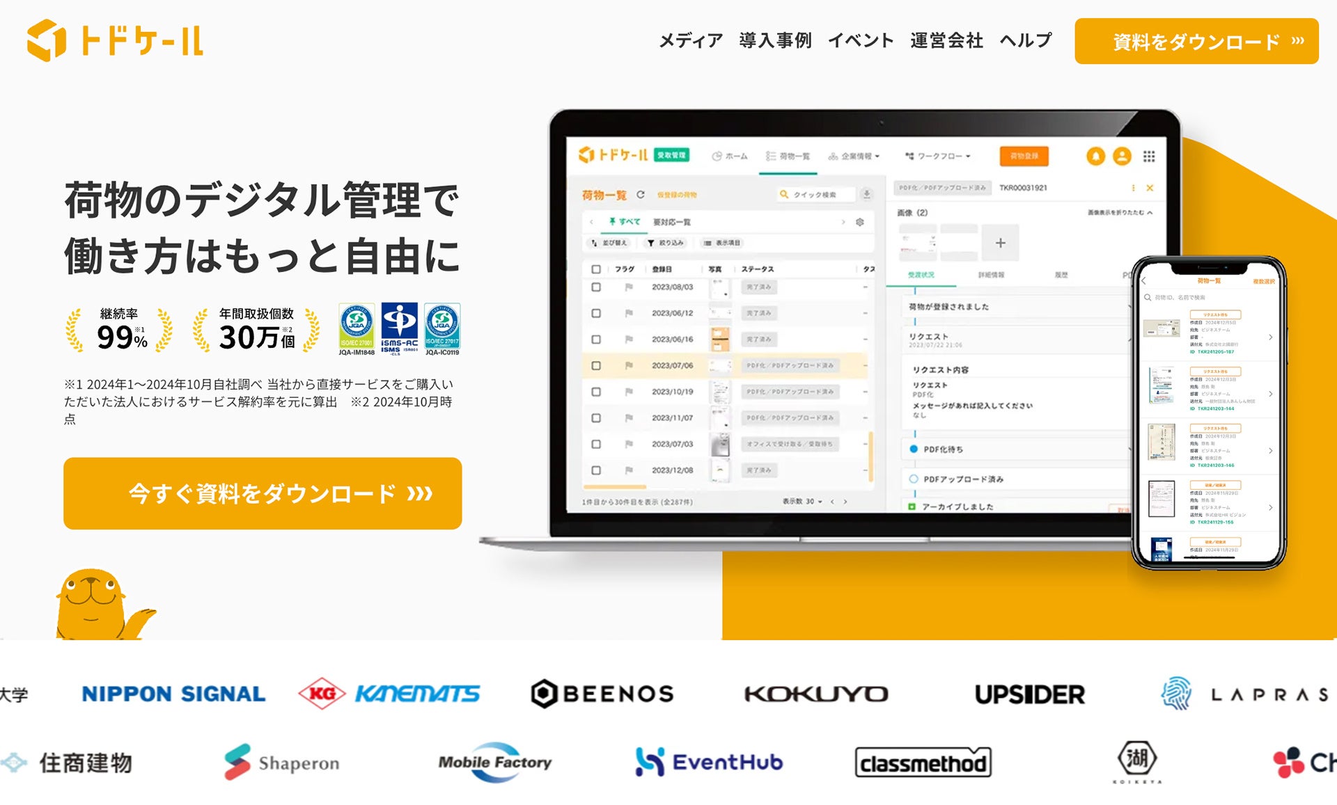 郵便物・配達物クラウド管理システム「トドケール」 、新機能追加に伴い、サービスサイトをリニューアル