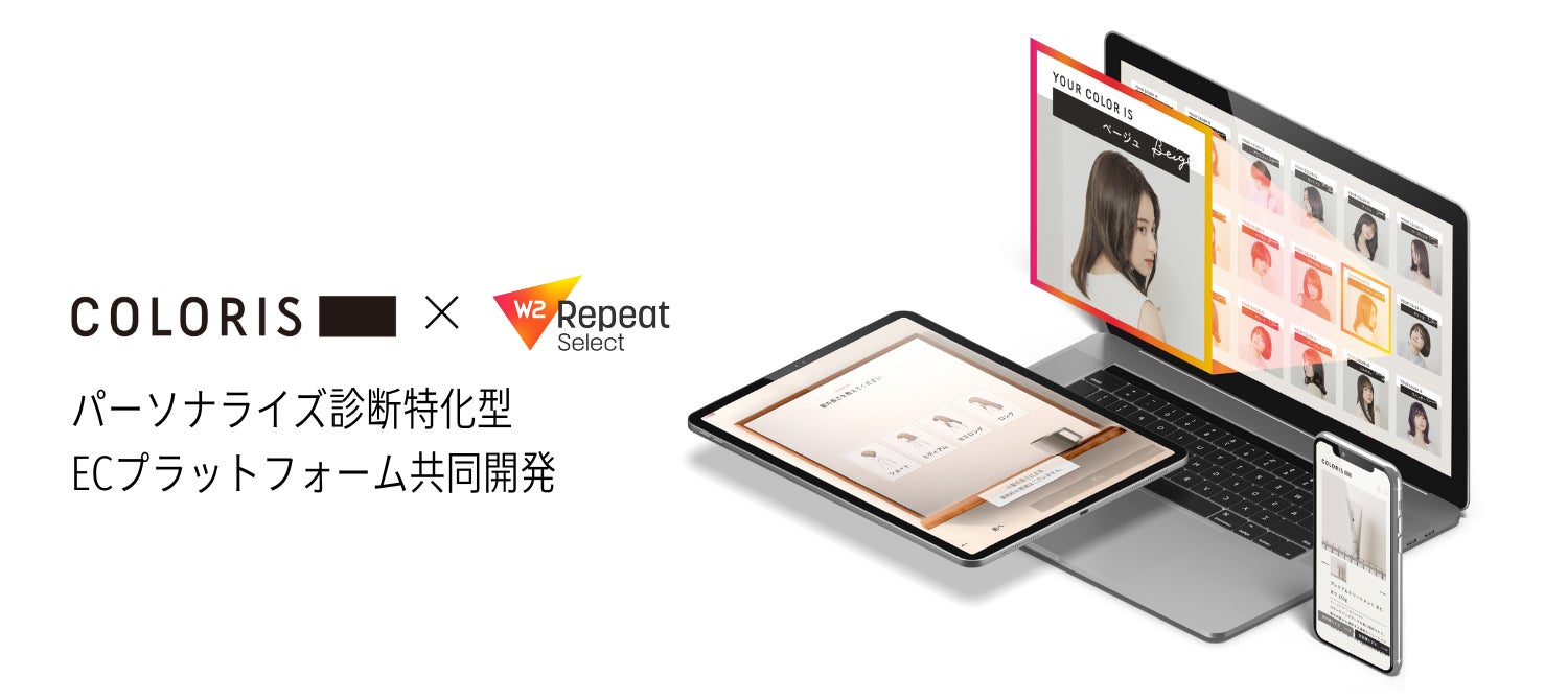 株式会社ストークメディエーション(本社:東京都渋谷区)が展開する日本初(*)のパーソナライズヘアカラーブランド「COLORIS(カラリス)」と、EC事業の「成功」にこだわる最先端ECプラットフォームを展開するW2株式会社(本社:東京都中央区、以下W2)は、本日より発売開始となるパーソナライズ診断特化型ECプラットフォーム「W2 Repeat Select」を共同開発したことをお知らせします。