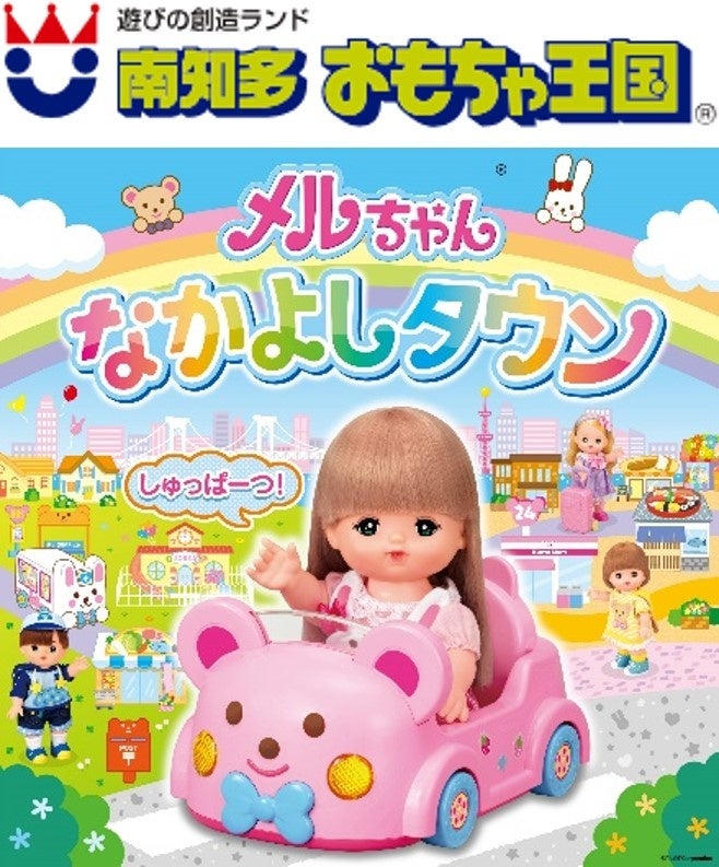 南知多おもちゃ王国で「メルちゃんなかよしタウン」の開催が決定!メルちゃんの誕生秘話やおともだち紹介のヒストリー展示、等身大のメルちゃんたちと写真が撮れるフォトスポットや、メルちゃんの世界観で遊べるプレイコーナー、楽しいアトラクションがいっぱいです。ぜひ「メルちゃんなかよしタウン」に遊びに来てくださいね。