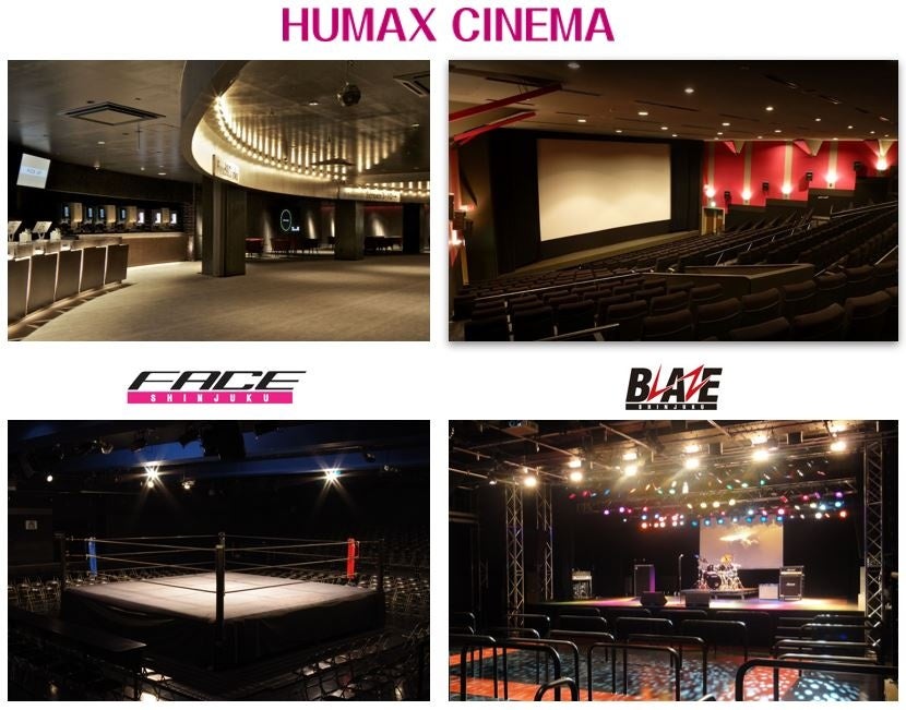 渋谷、池袋、横須賀、成田に映画館「HUMAX CINEMA」4館25スクリーンを運営、洋画・邦画のロードショーをはじめとする話題作から個性的な作品までバラエティに富んだ作品を提供しています。新宿にライブハウス「新宿BLAZE」(収容人数800名)、イベントホール「新宿FACE」(収容人数500名)2館を運営、LIVE・コンサート・演劇・プロレス・格闘技などの興行に対応しています。