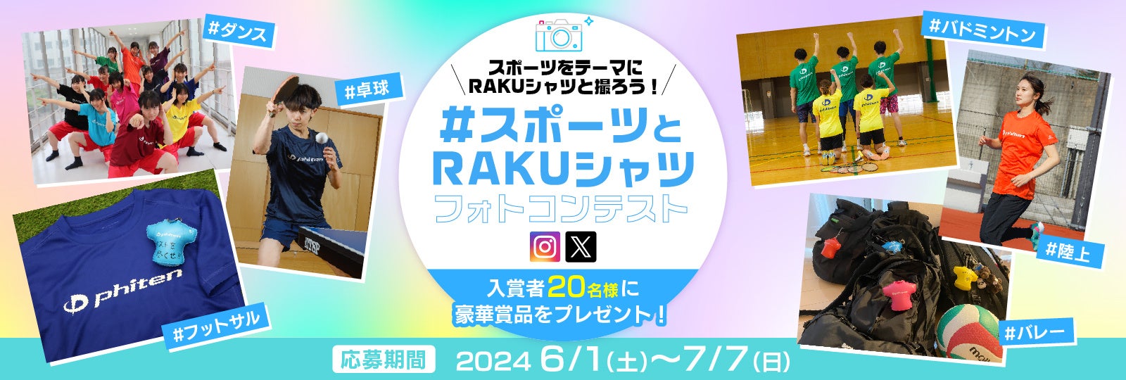 RAKUシャツリニューアルを記念して、6/1(土)~7/7(日)の期間『「#スポーツとRAKUシャツ」フォトコンテスト』をX・Instagramで同時開催します。