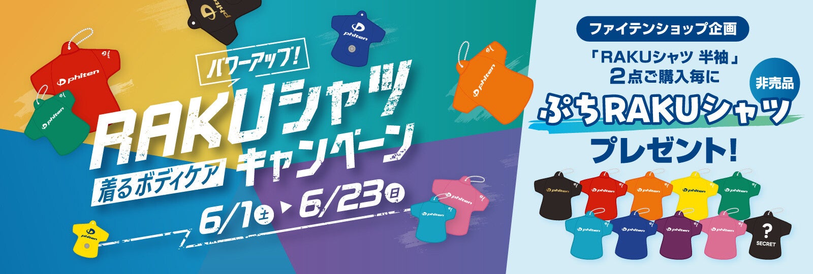 全国のファイテンショップにて、リニューアルした「RAKUシャツ 半袖」を2点ご購入毎に、「ぷちRAKUシャツ(非売品)」1点をプレゼント!