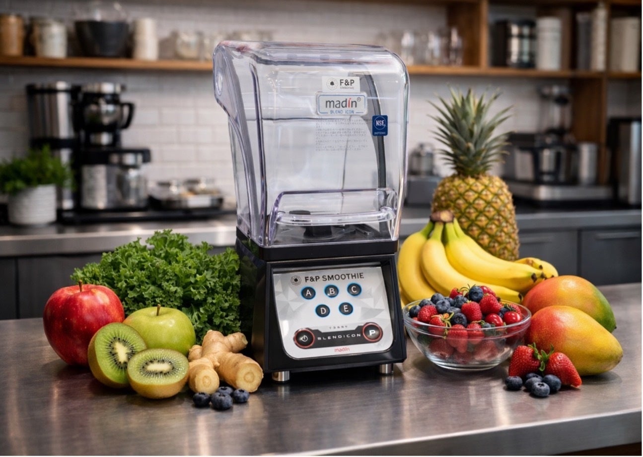 本取り組みは、台湾の業務用ブレンダーメーカーmadin社と約1年にわたり共同開発した加盟店専用モデル「F&Pモデル サイレントプロブレンダー」の運用開始を軸とするものです。これにより、F&Pが提供するスムージーキットの品質を、経験に依存せず再現できる環境が整いました。
