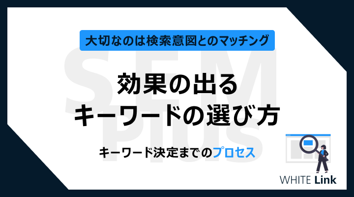 「効果の出るキーワードの選び方」は、Web検索を対象に、上位表示させて成果につながるキーワードの選び方をご説明します。検索対策をするためには検索されることを狙った「言葉選び」が必要になります。言葉を間違えると、せっかくコンテンツが検索上位に表示されても成果につながらないからです。