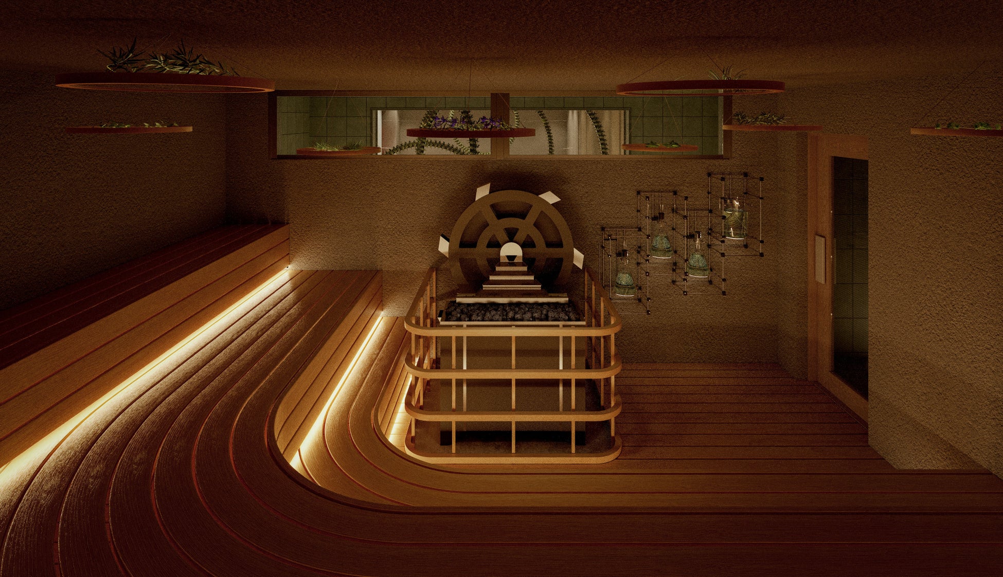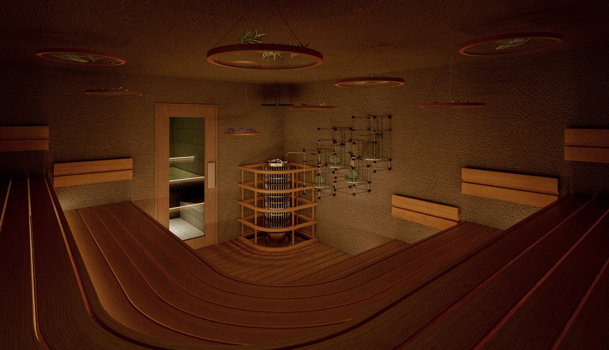 北海道の自然が育んだフレッシュなハーブを専用の蒸留器にかけ、その蒸気と香りでサウナ室や岩盤浴を満たします。定期的に実施する専門スタッフによるアウフグース(ロウリュパフォーマンス)では、ハーブ水から立ち上る熱波が発汗を促し、心身をリフレッシュさせます。サウナ後には、外気を感じられる開放的なととのいスペースをご用意。火照った体をゆっくりとクールダウンさせながら、自分だけの瞑想時間を心ゆくまでお過ごしいただけます。