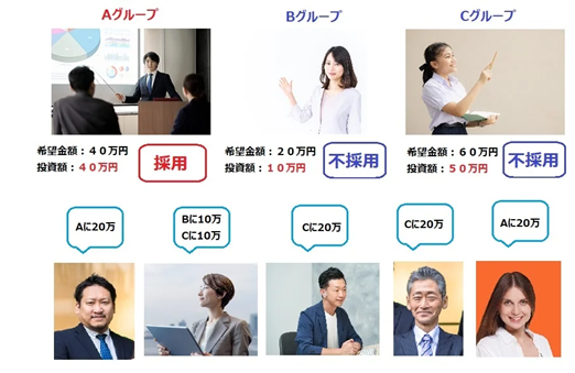 最大130万円を勝ち取れ。「マネーの虎」形式で資金配分
