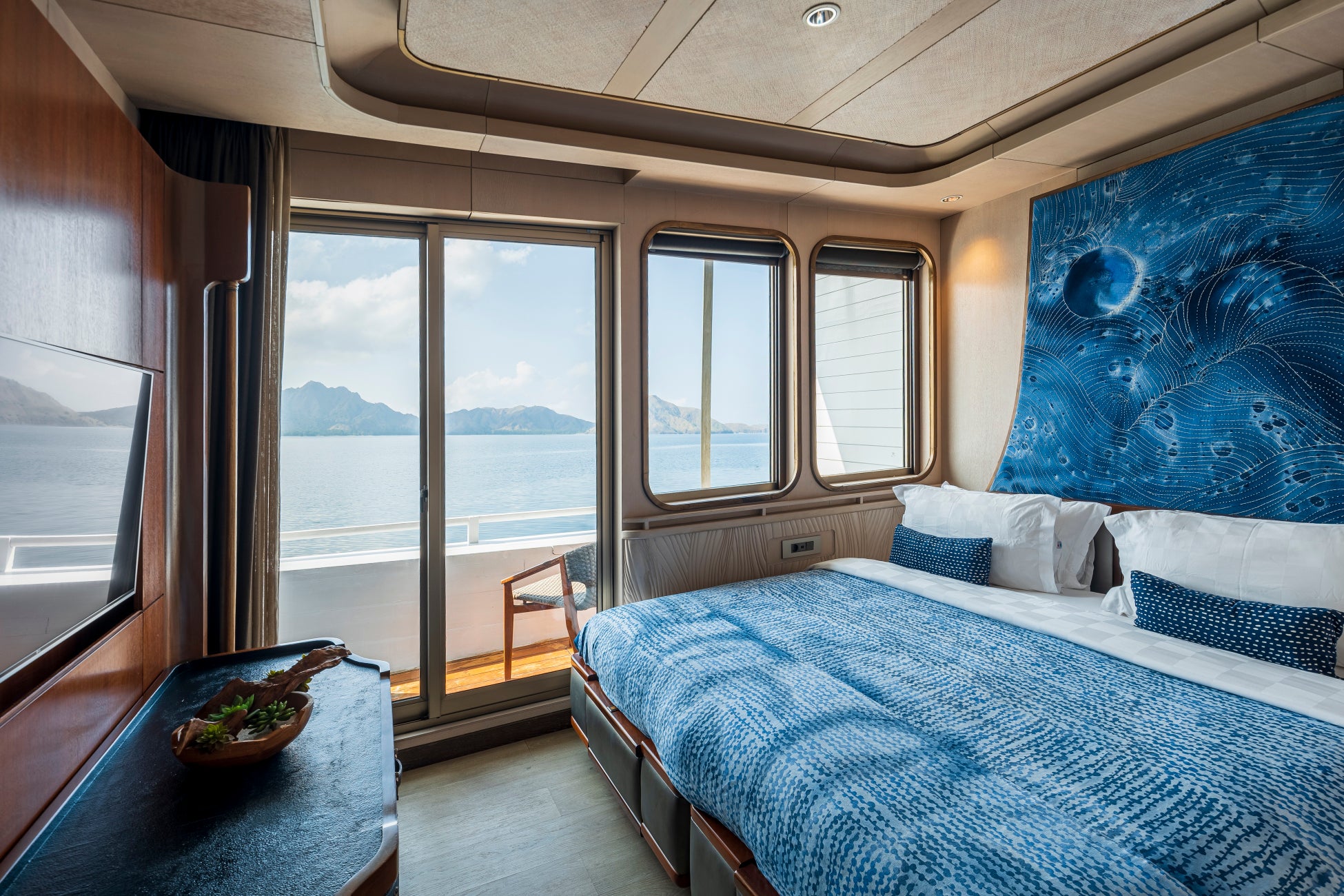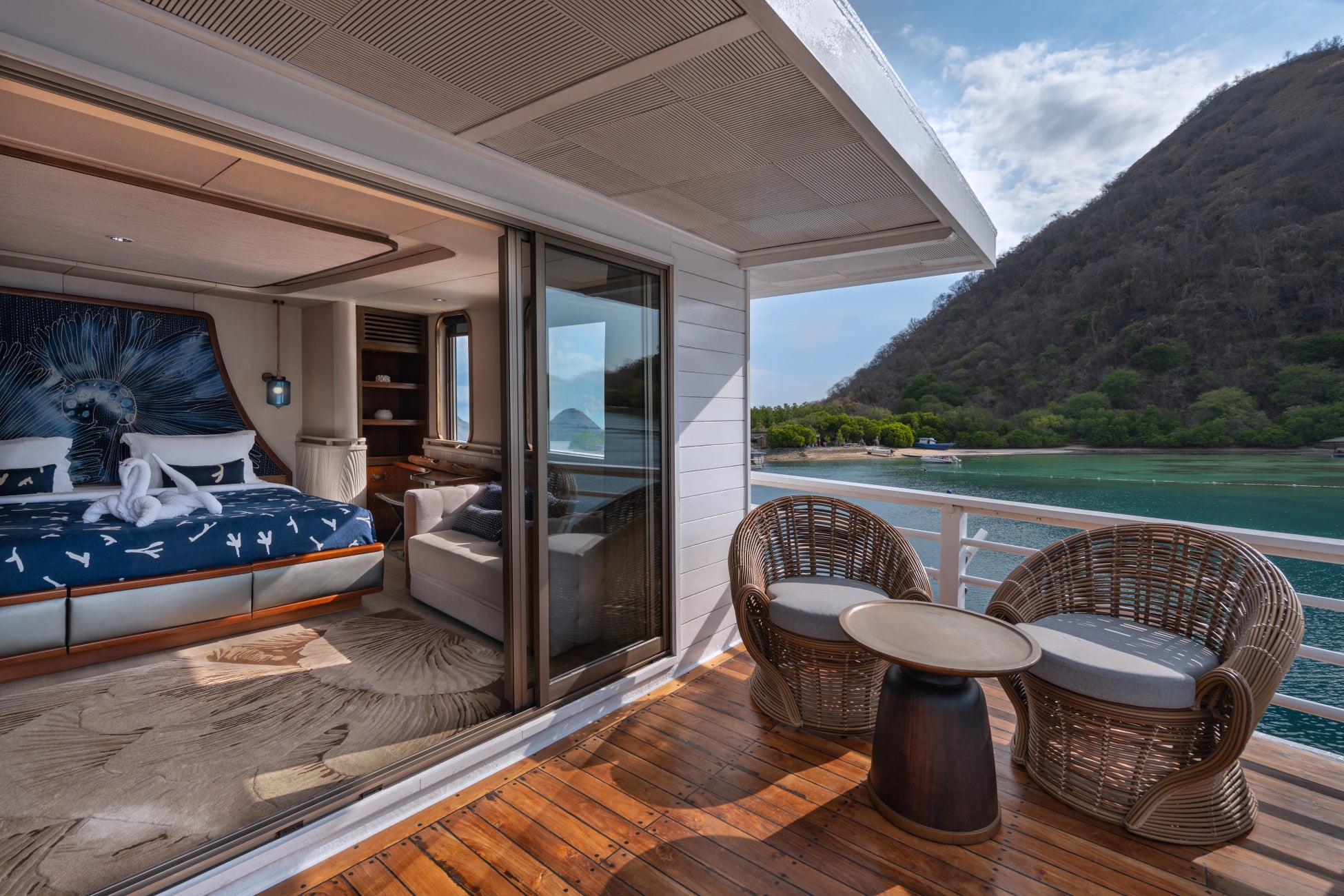 アヤナ ラコディア号は、南スラウェシの伝統的な木造帆船フィニシに敬意を表した、全長54メートルの先進的なフィニシ船です。専用バルコニーとオーシャンビューのバスタブを備えた69㎡のマスタースイートをはじめ、専用バスルームを備え海を眺めることのできるラグジュアリースイートが6室あり、全9室の落ち着いた客室をご用意しています。船内にはラウンジ、バー、屋内ダイニングエリア、そして広々としたデイベッドを備えたメインデッキもあり、快適で心地よいクルーズ体験をお楽しみいただけます。