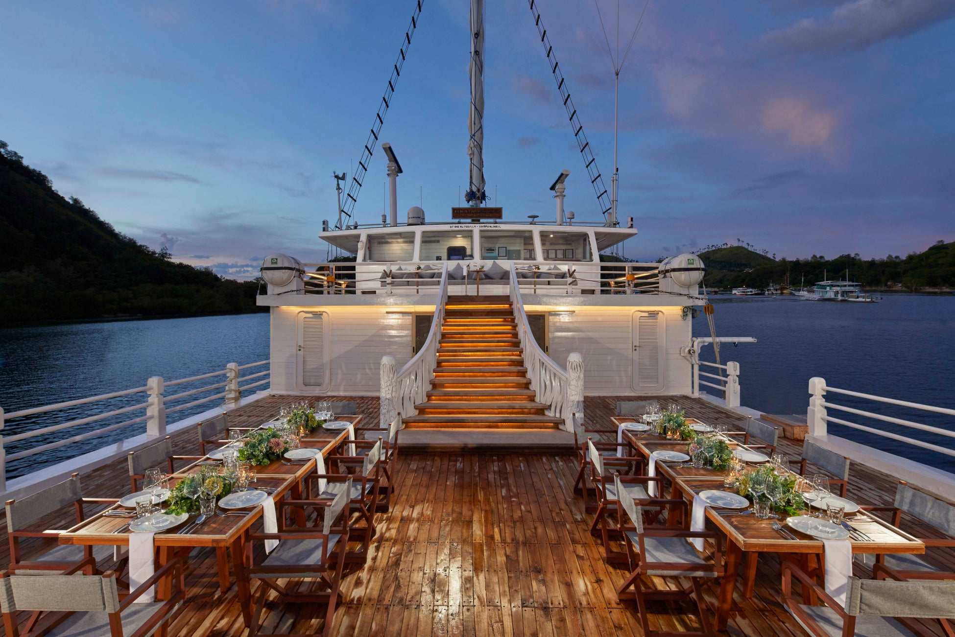 すべてのコースには、フルボードのダイニング、ミネラルウォーターとノンアルコール飲料の飲み放題、シュノーケリング、カヤック、スタンドアップパドルボード、ヨガ、映画上映など多彩なアクティビティが含まれております。また、コモド国際空港からの往復送迎、コモド国立公園の入場料、そしてプロによるデジタル写真の記録もご提供しております。