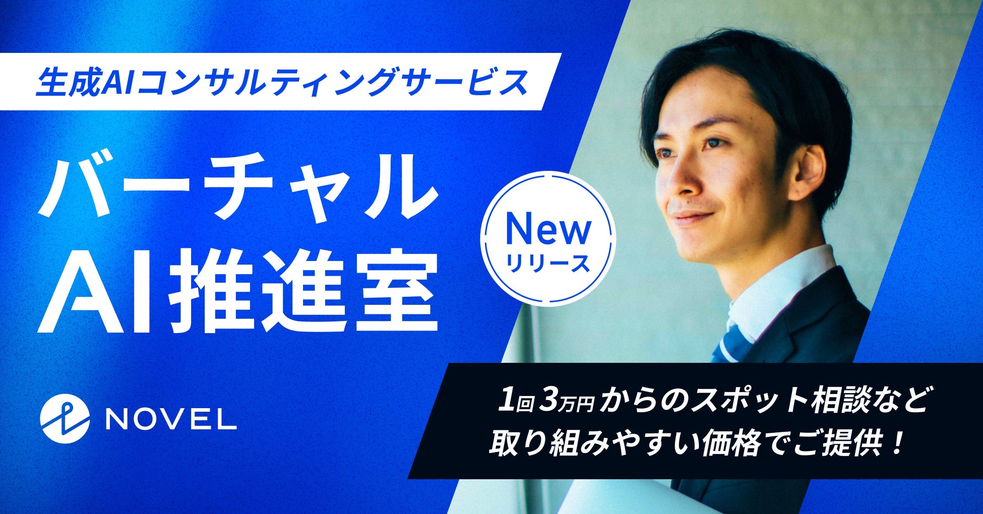 NOVEL株式会社(本社:東京都、代表取締役:岡田 徹)は、企業の生成AI導入を包括的に支援する新サービス「バーチャルAI推進室」の提供を開始いたしました。