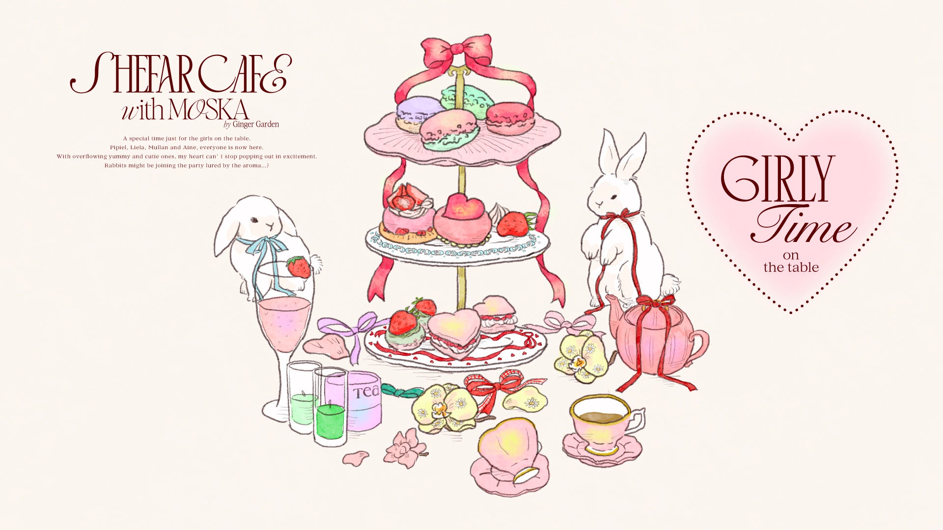 清楚で純情な乙女のpipiel(ピピエル)、品行方正な気分屋のレディliela(リエラ)、秘密主義でもどかしい爽やかなmullan(ミュラン)、少女と女性の狭間のお茶目でませたaine(アイネ)が集まった、ガーリータイムがテーマです。