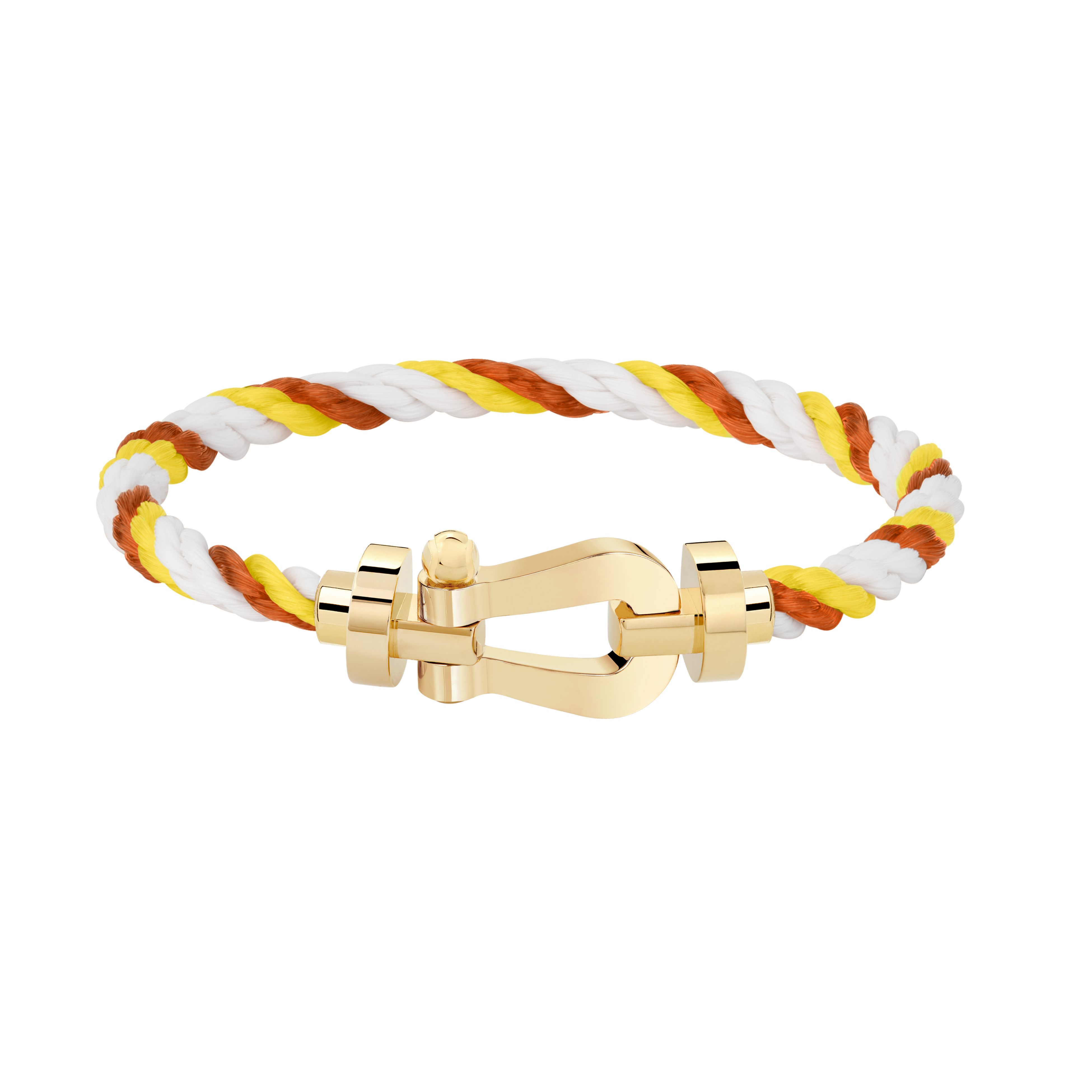 限定モデルとして発表された今シーズンのフォース10ケーブルは、テラコッタとホワイトというトーナメントと切り離せないカラーに、テニスボールのネオンイエローを組み合わせました。この新しいスポーティーでシックでラディアントな編み込みには、ミディアムモデルのテラコッタカラーのケーブルがマッチします。