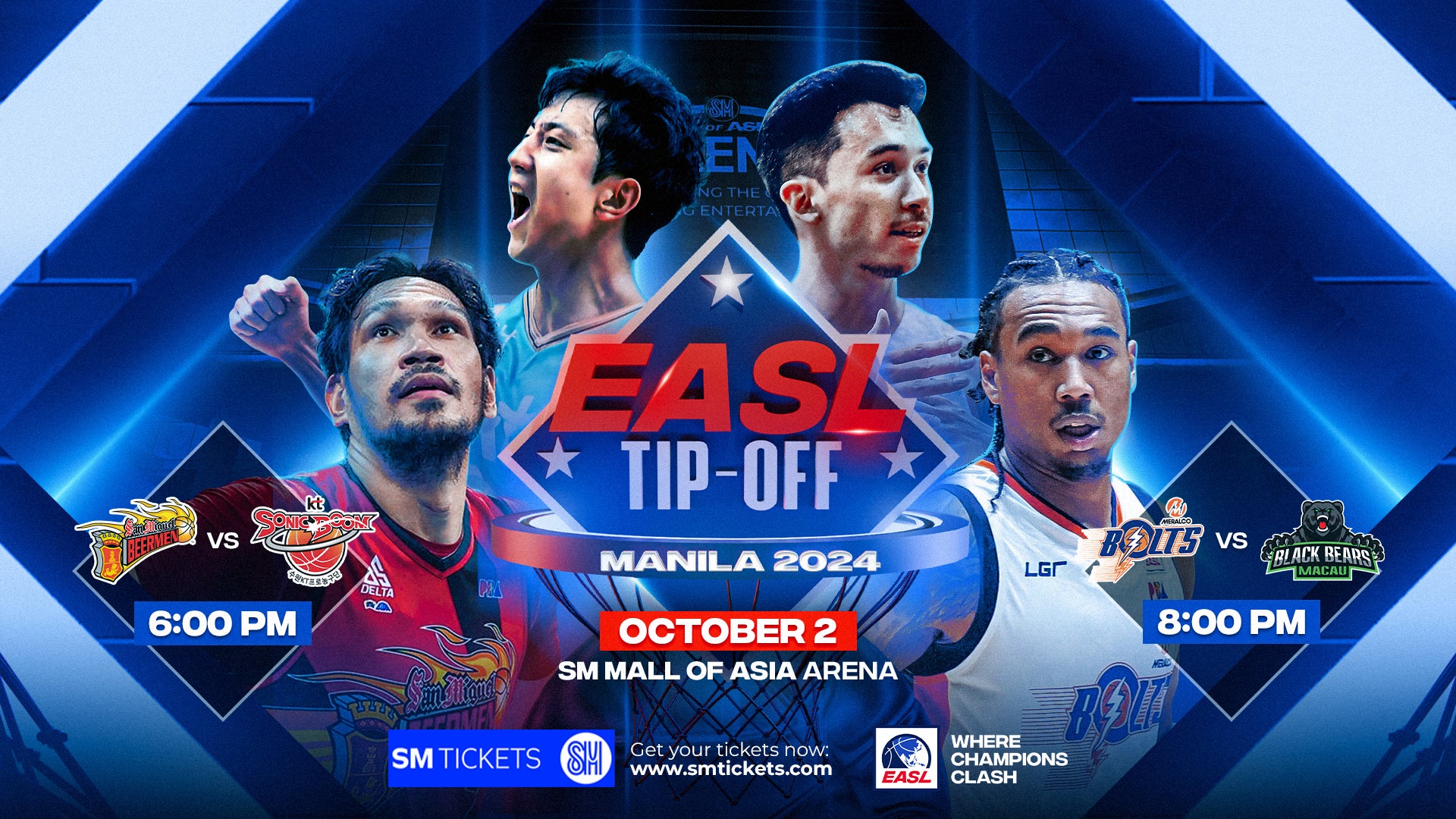 フィリピン・マニラ、2024年9月10日 – 東アジアスーパーリーグ(EASL)は、2024年10月2日、マニラを象徴するSMモール・オブ・アジア・アリーナでダブルヘッダーゲーム「EASL TIP-OFF 2024」にて、2024-25シーズン開幕することをお知らせいたします。開幕戦では、アジアバスケットボール界を代表する2つの注目の対戦が行われます。