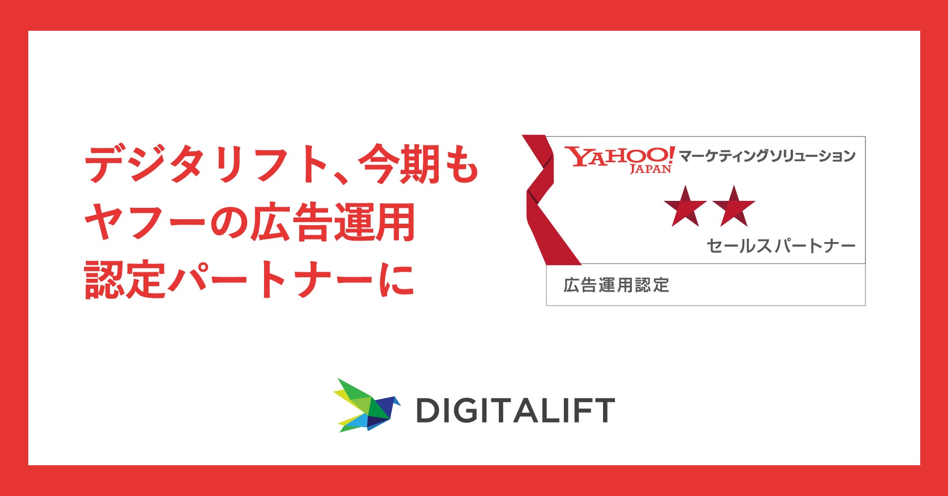 デジタリフト、今期もヤフーの「広告運用認定パートナー」に