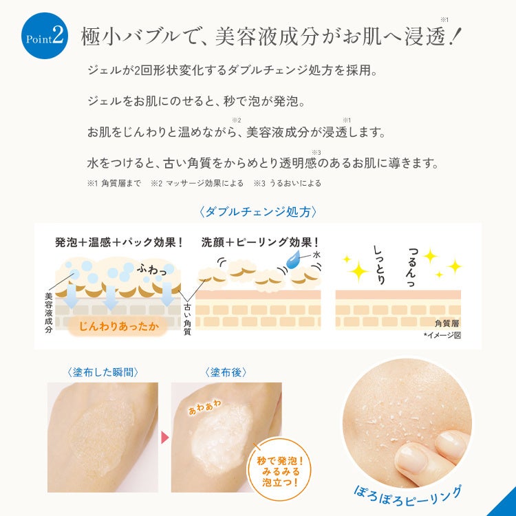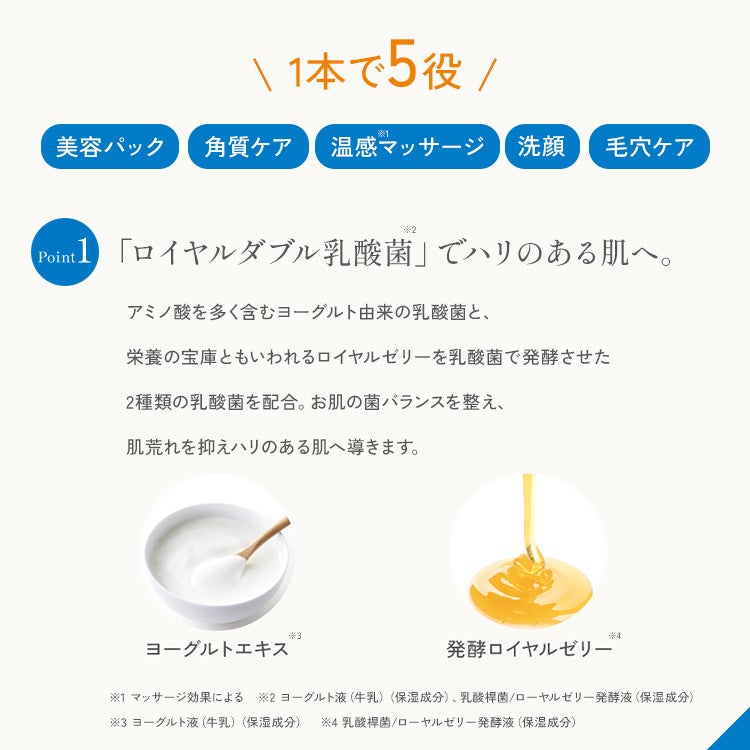 1本で美容パック・角質ケア・温感※1マッサージ・洗顔・毛穴ケアの5役。毎朝、透明感※2あふれるハリのある肌へ。