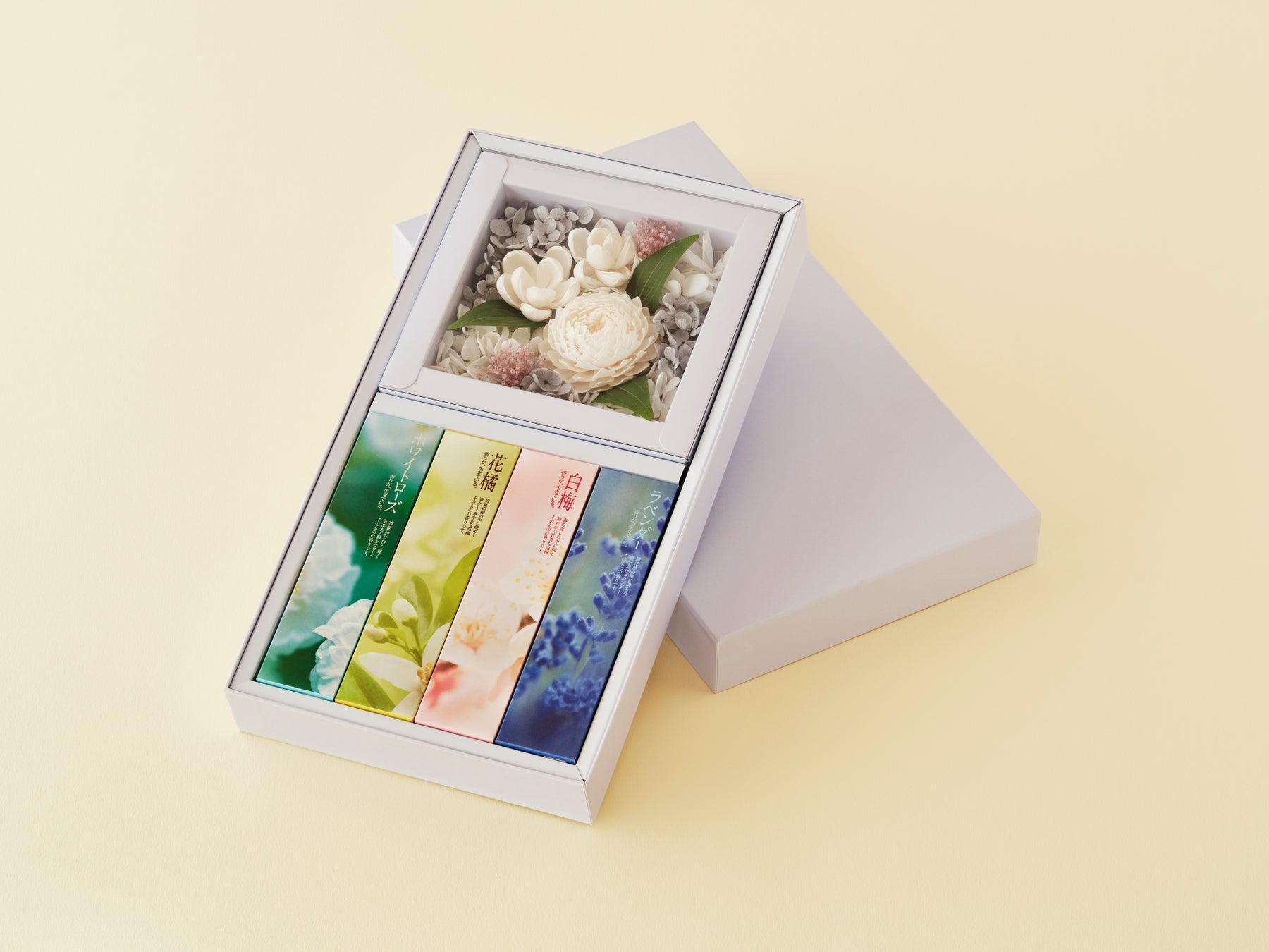<「母の日参り」にもおすすめ お線香『かたりべ』のフラワーボックスギフト>