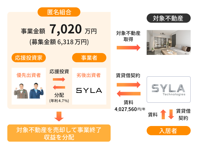 “応援を新しいカタチで”をコンセプトに、一口1万円から、社会貢献や地域創生、誰かの夢や挑戦に繋がる不動産に応援投資ができる“応援型不動産クラウドファンディングプラットフォーム”です。