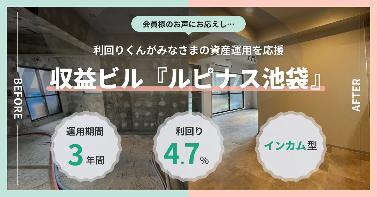 【応援型不動産クラファン利回りくん】9月2日(金)12時より「収益ビル『ルピナス池袋』 」の募集を開始いたします!